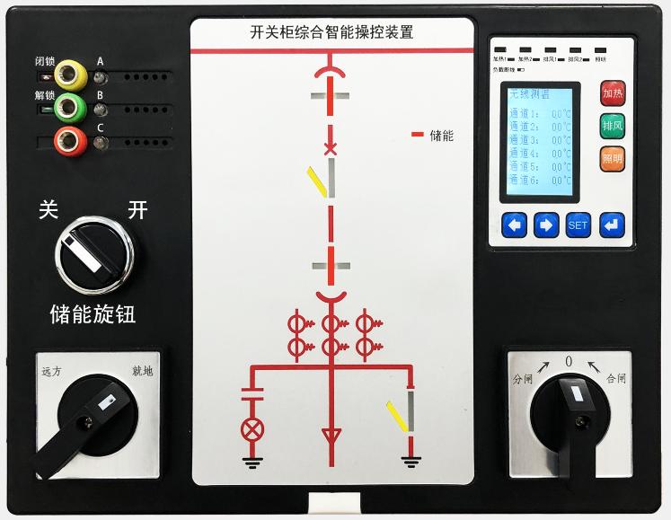 开关状态智能操控装置是根据目前中高压开关柜技术发展而开发设计的一种新型多功能、智能化动态模拟显示及操控装置,适用于中置柜、手车柜、固定柜、环网柜等多种成套装置上。液晶型操控装置不仅具有动态模拟图、柜内温湿度数字显示及可编程控制、带电显示及闭锁、智能语音防误提示功能、操控转换开关(包括储能开关、远方/就地转换开关、分合闸转换开关)、RS485数字通讯等功能;还集成了多功能电能表的全部功能,可同时测量显示多种电力参数:三相电压、三相电流、有功功率、无功功率、功率因数、频率,计量有功电能和无功电能;99条事件记录功能。